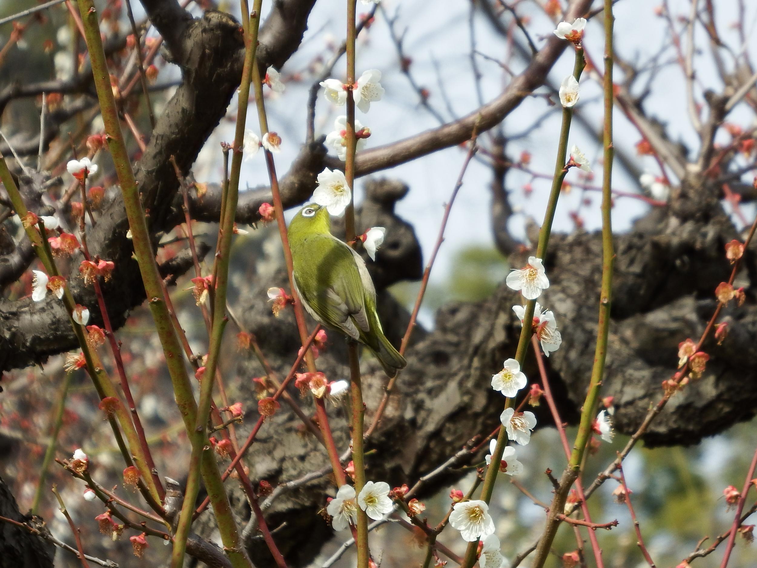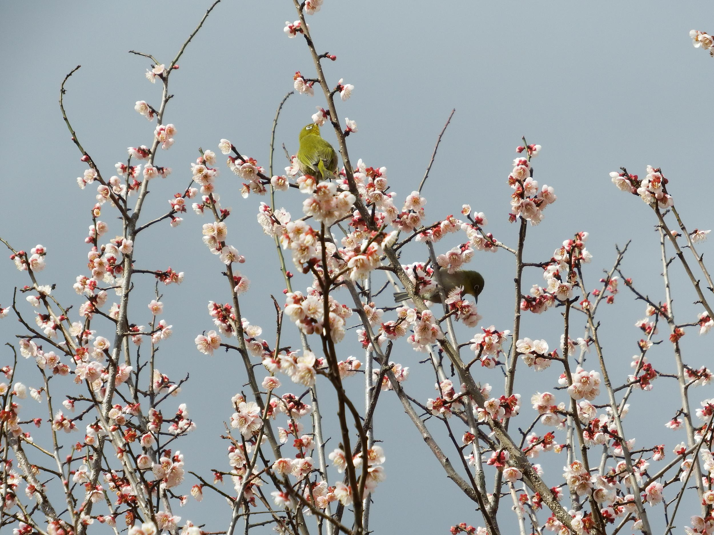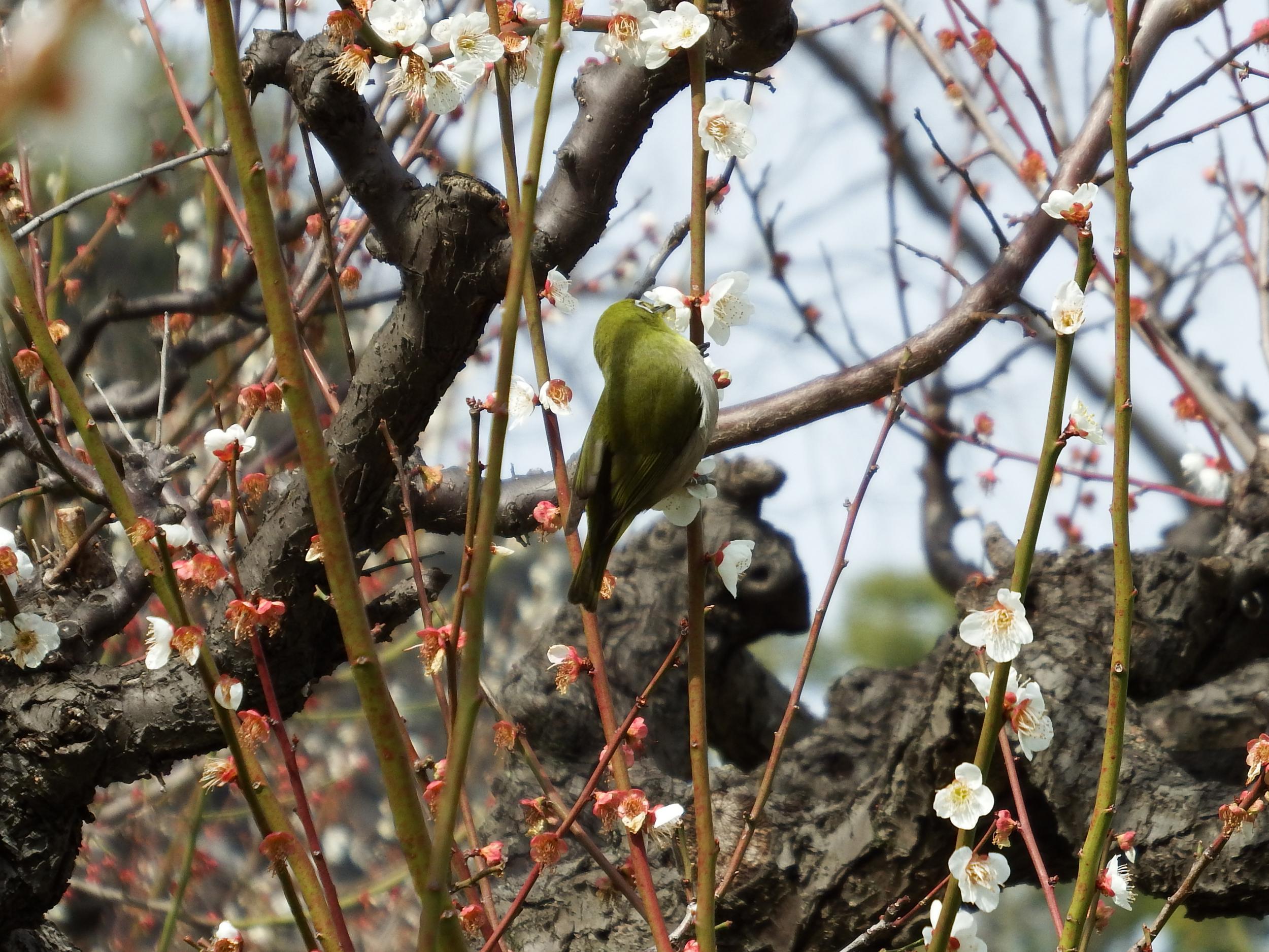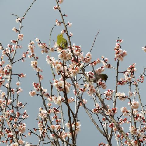 梅林 日月梅とメジロ