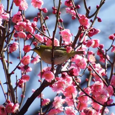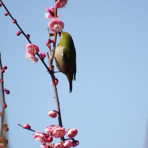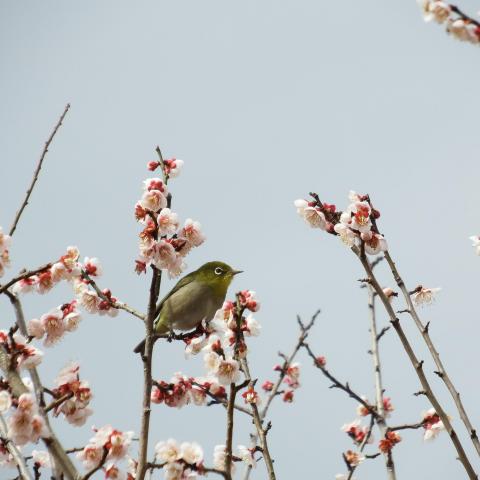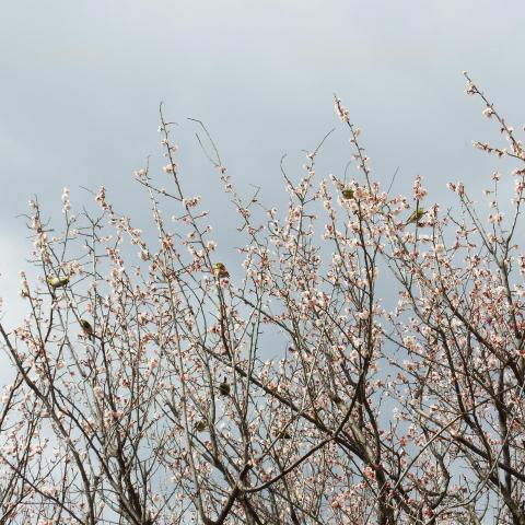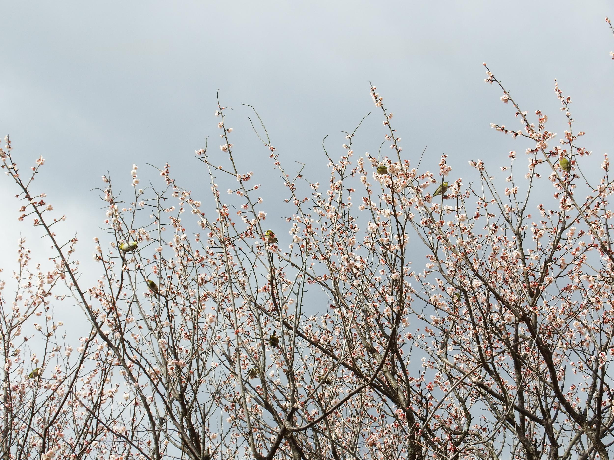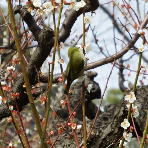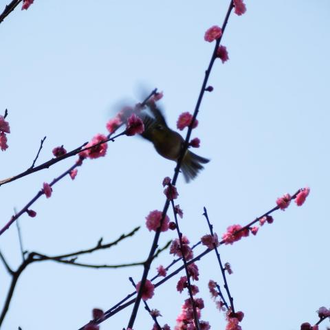 梅林 日月梅とメジロ