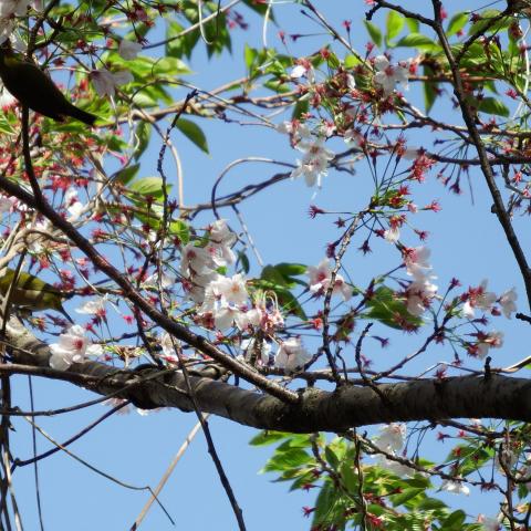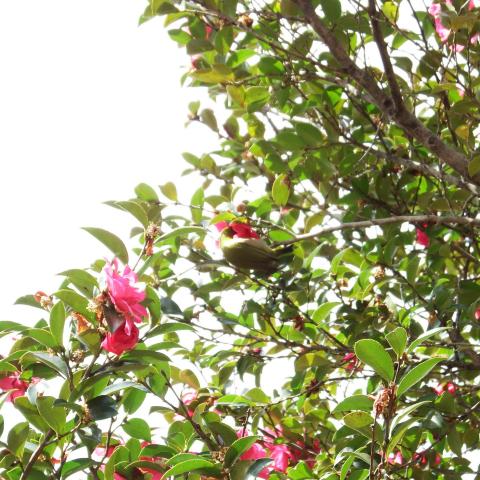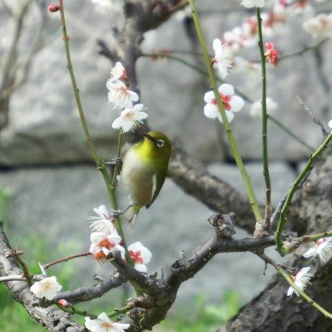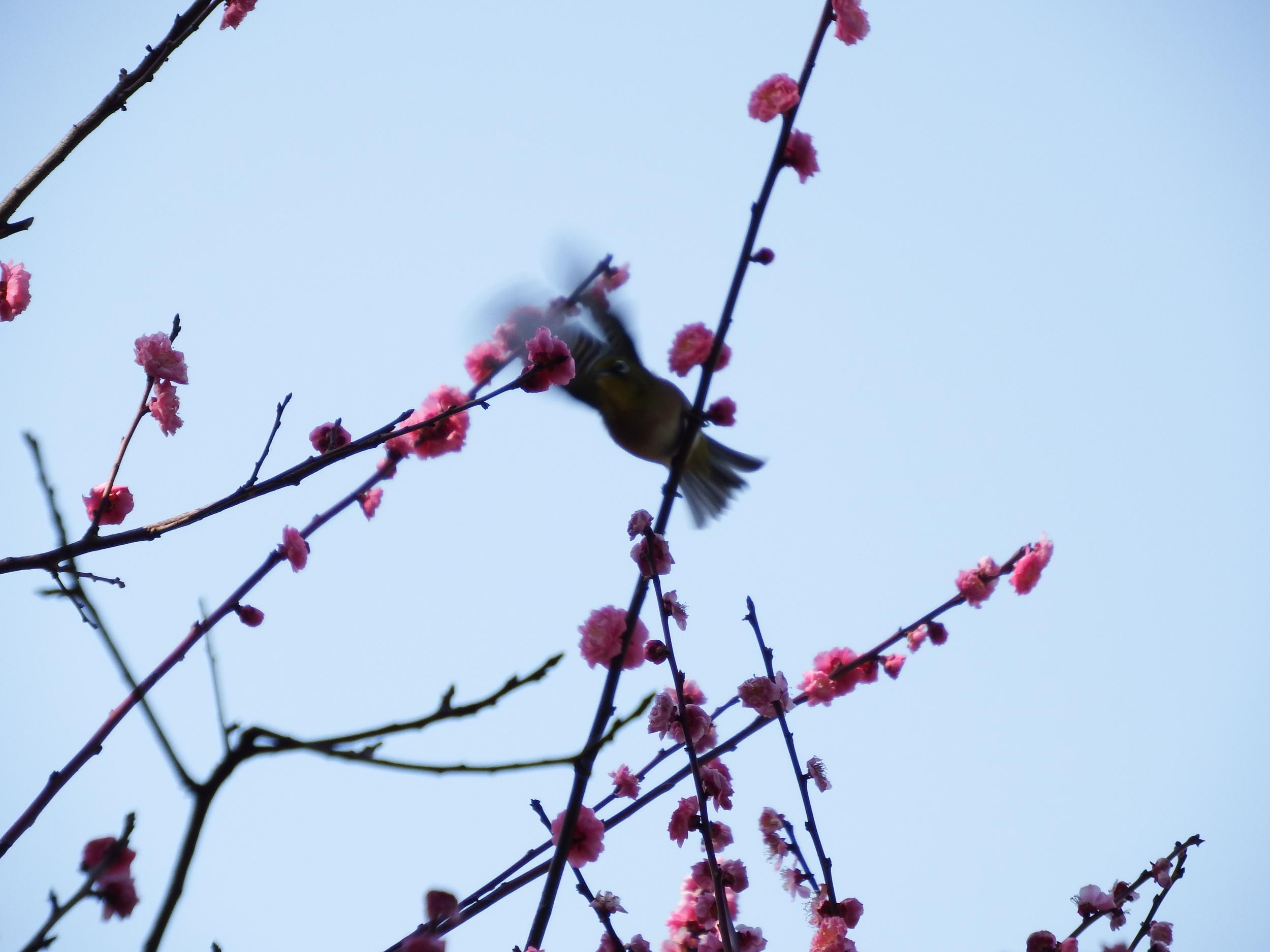 八重唐梅とメジロ