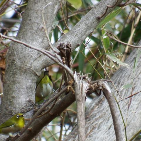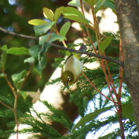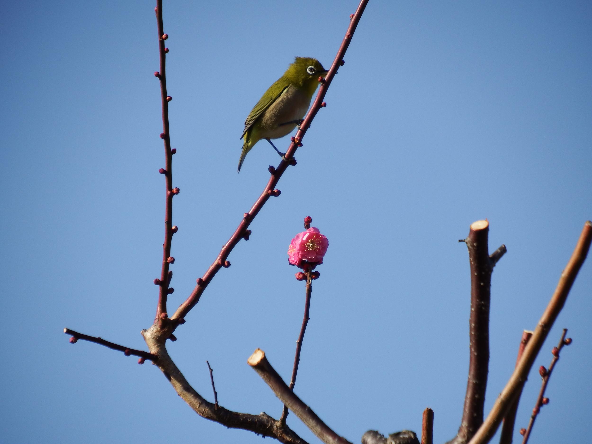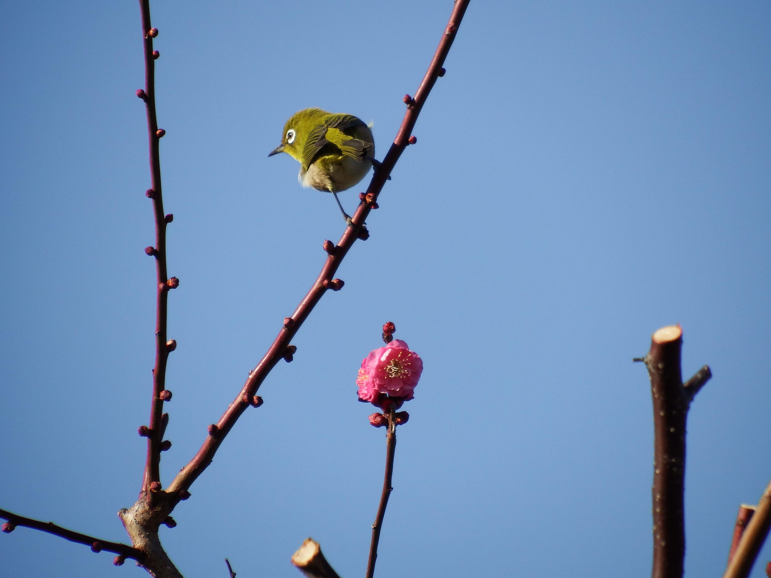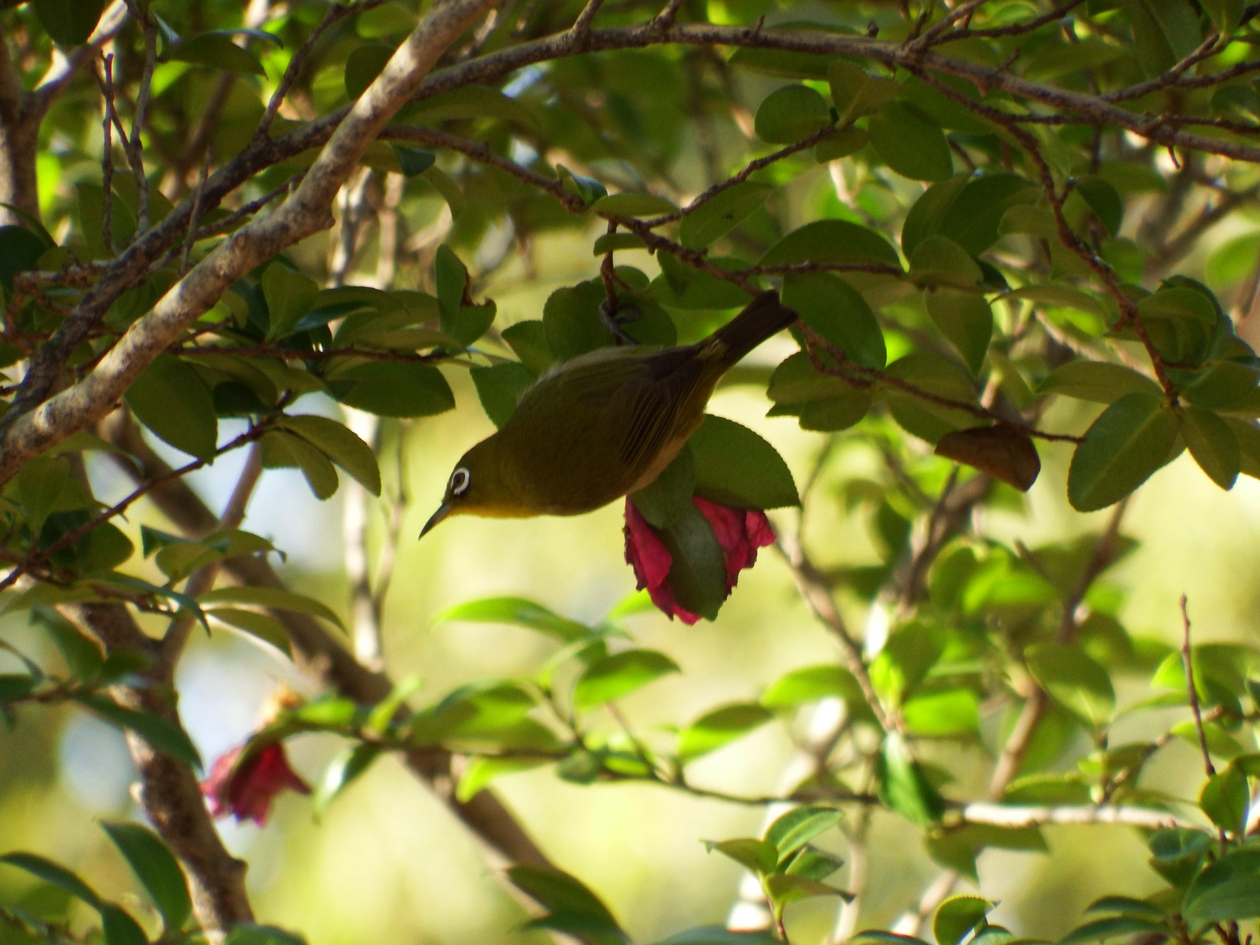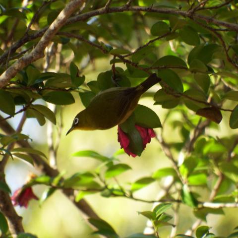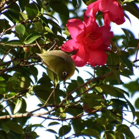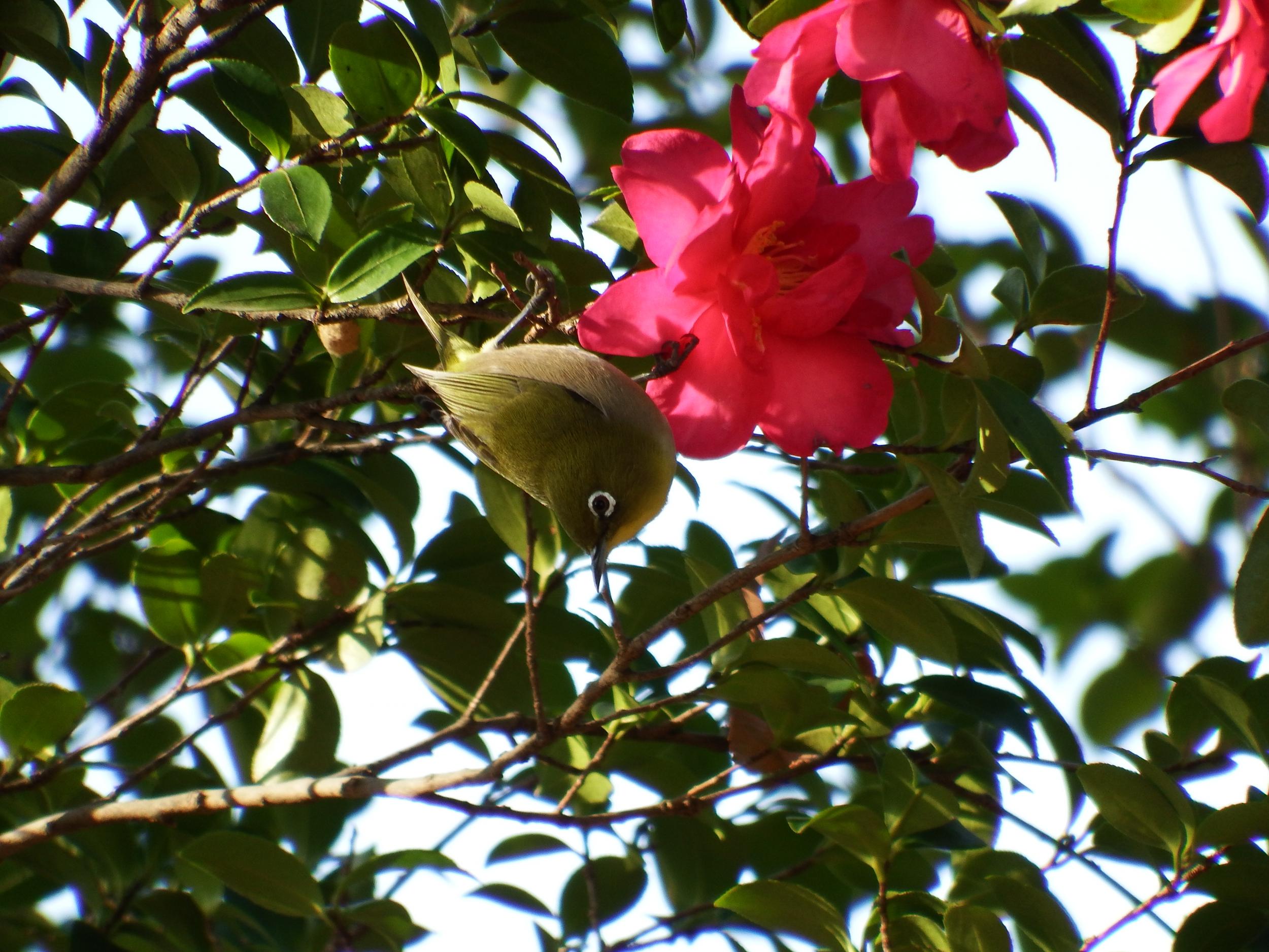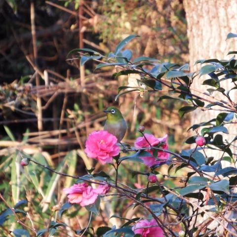 サザンカとメジロ