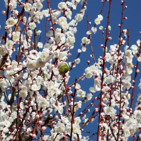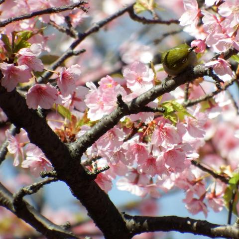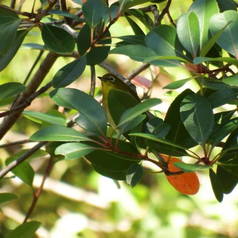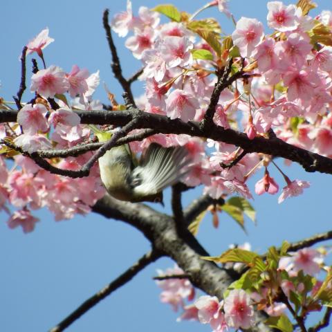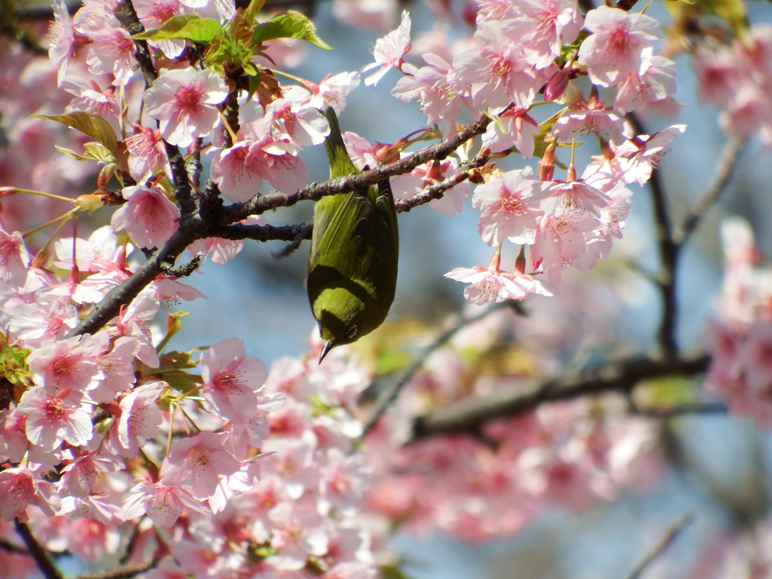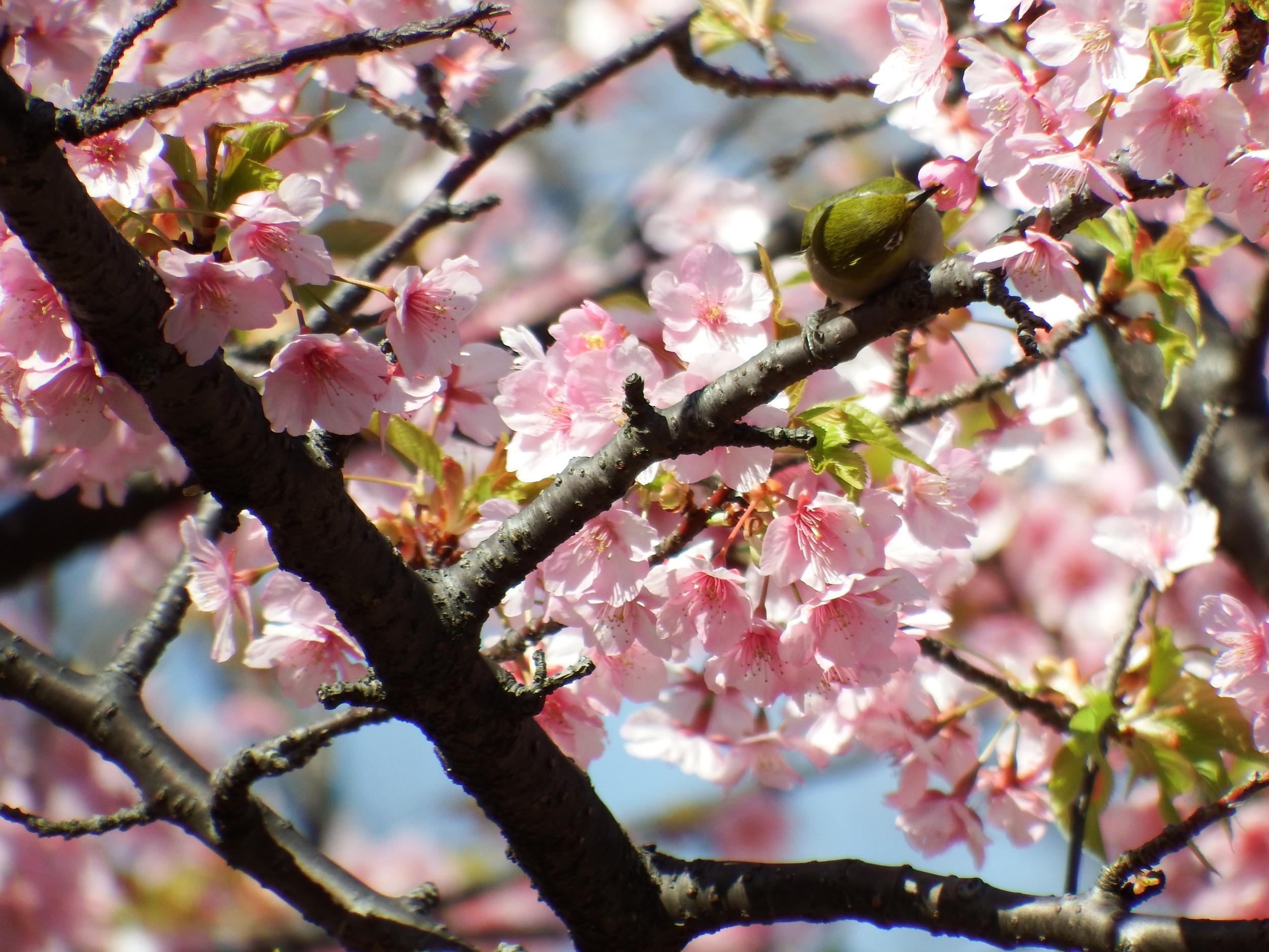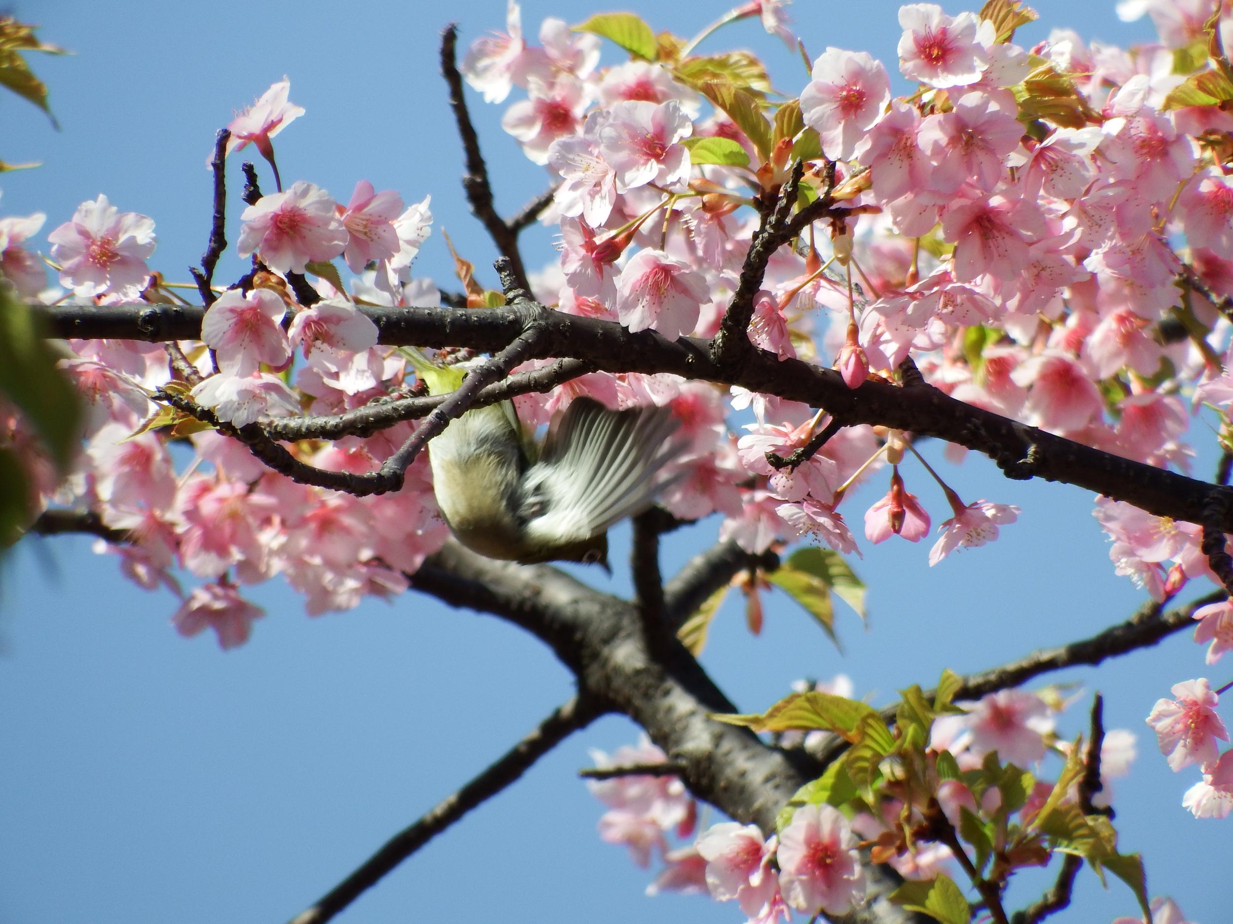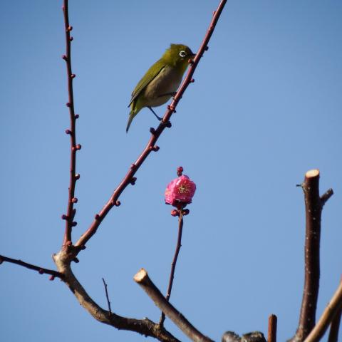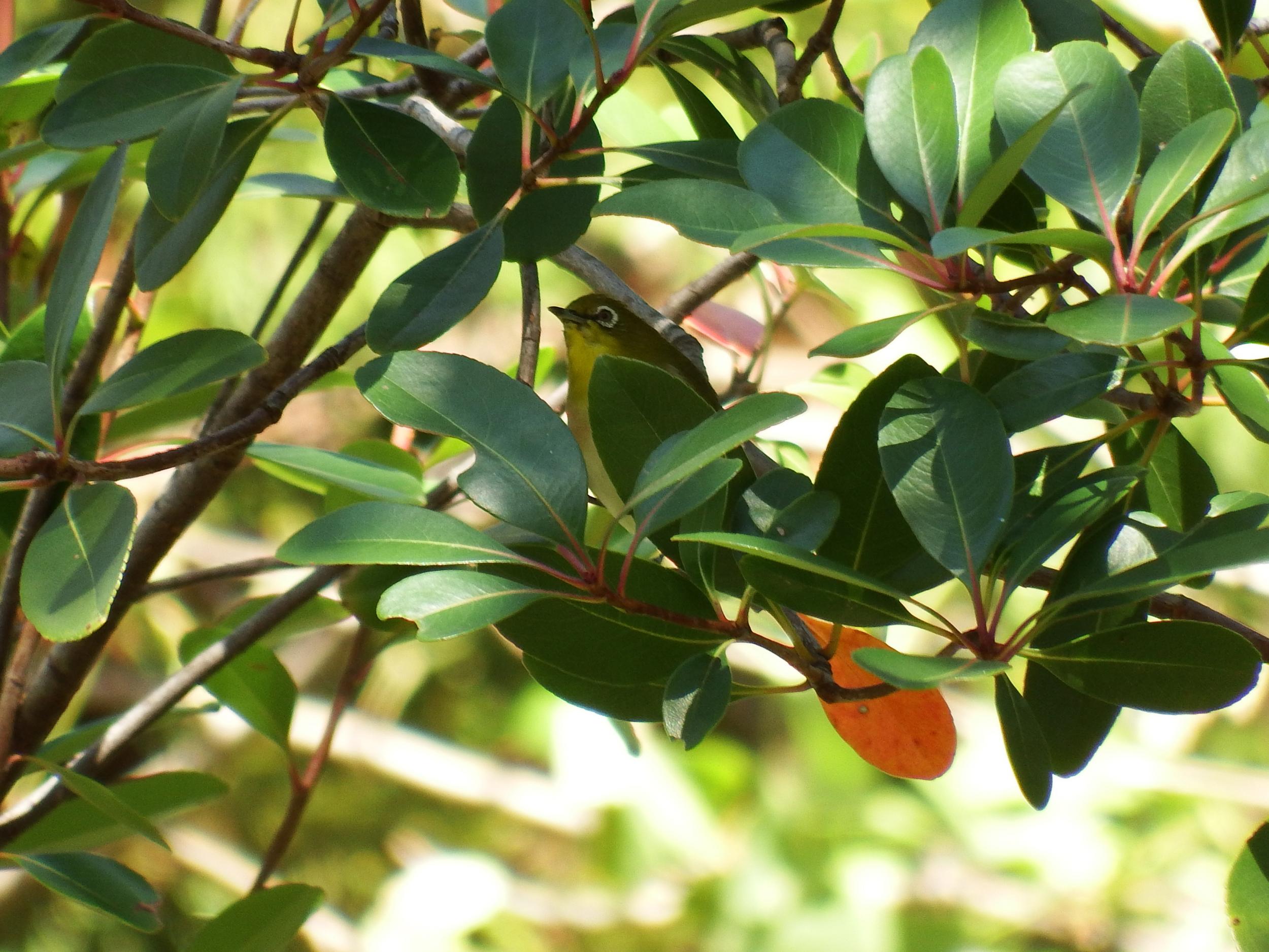 サザンカとメジロ