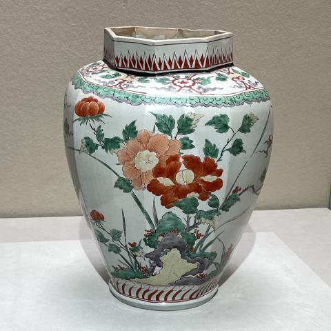 色絵牡丹椿文八角壺