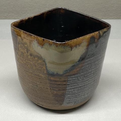 白釉鉄釉菱形水指